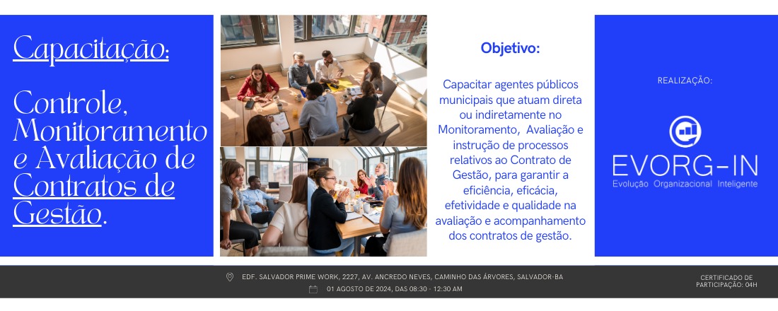 A EVORG-IN é uma empresa inovadora, que traz consigo a cultura ágil voltada a promover soluções em Gestão, Controle, Monitoramento e Avaliação, fornecendo dados relevantes e auxiliando os gestores para tomadas de decisões assertivas.